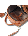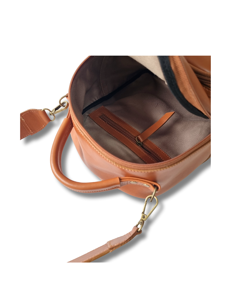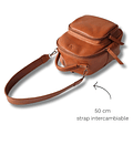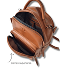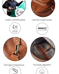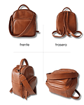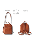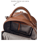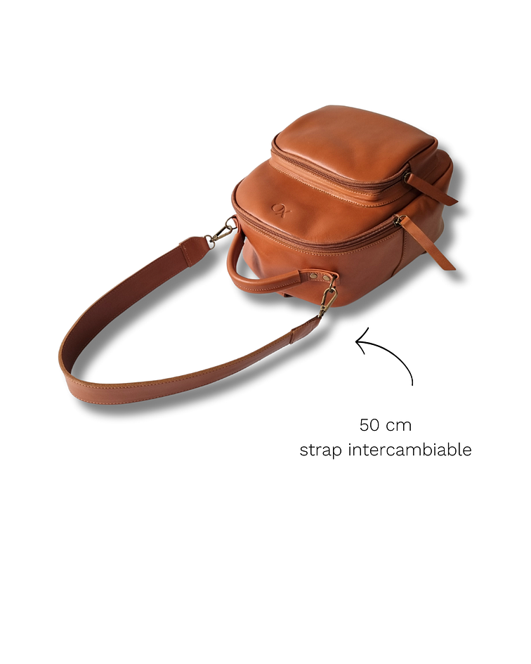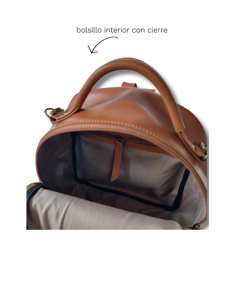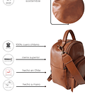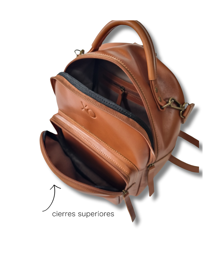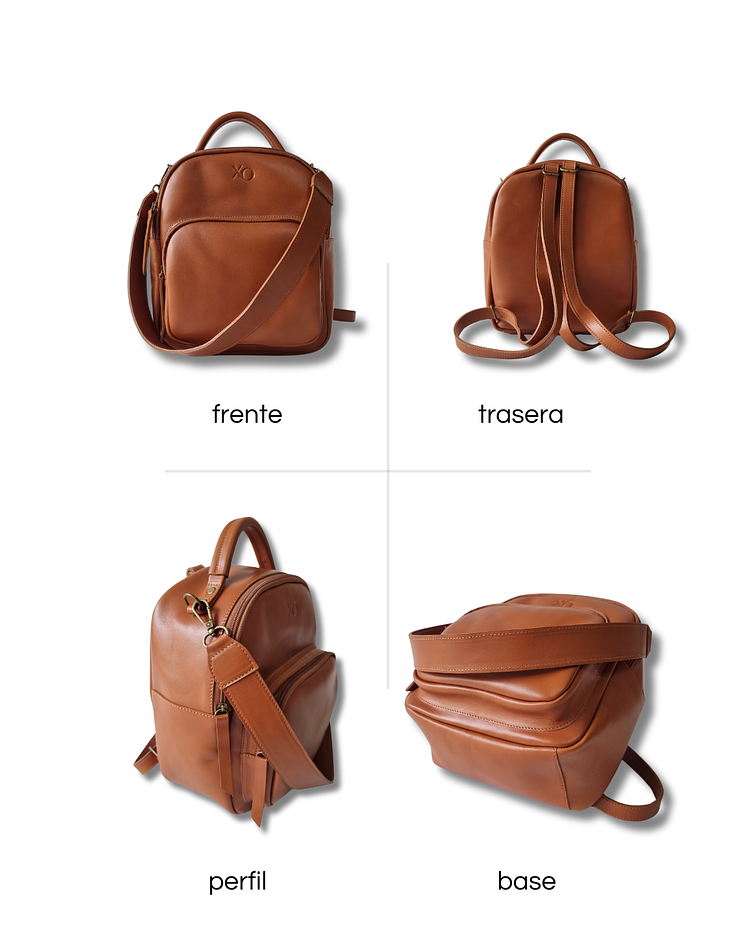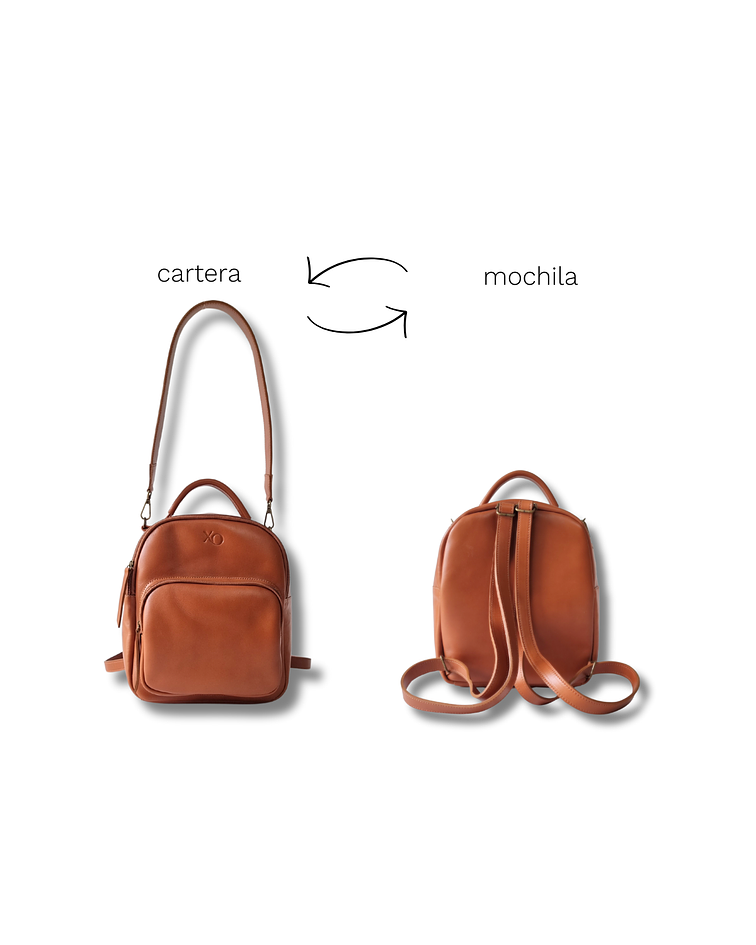 - Strap corto de cuero: Diseñado para transformar fácilmente de mochila a elegante cartera que puedes llevar cómodamente al hombro.
