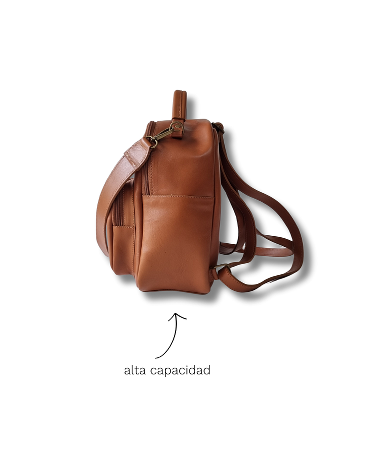 Mochila de cuero funcional gracias a su strap para usar el hombro, es tu compañera ideal. Diseñada para mujeres modernas que buscan combinar estilo y funcionalidad, esta mochila te acompaña en cada paso de tu día. Confeccionada por artesanos expertos, utilizando cuero genuino, garantizando calidad y autenticidad elaborada a mano con técnica marroquinera, cada pieza es una obra de arte que combina funcionalidad y diseño atemporal resistente al tiempo.